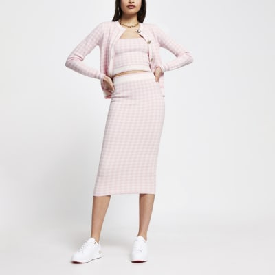 Pink houndstooth set. Whether youre hitting the yoga studio or dressing it up for a night on the town this set has got you covered. Fitted Mini Skirt Invisible Zipper Closure Lined Non Stretch Self. I am sadly not in a place where I can drop that on a skirt and top but luckily there are plenty of dupes.