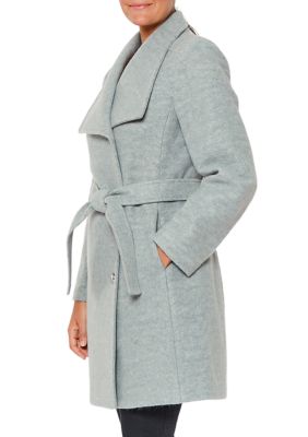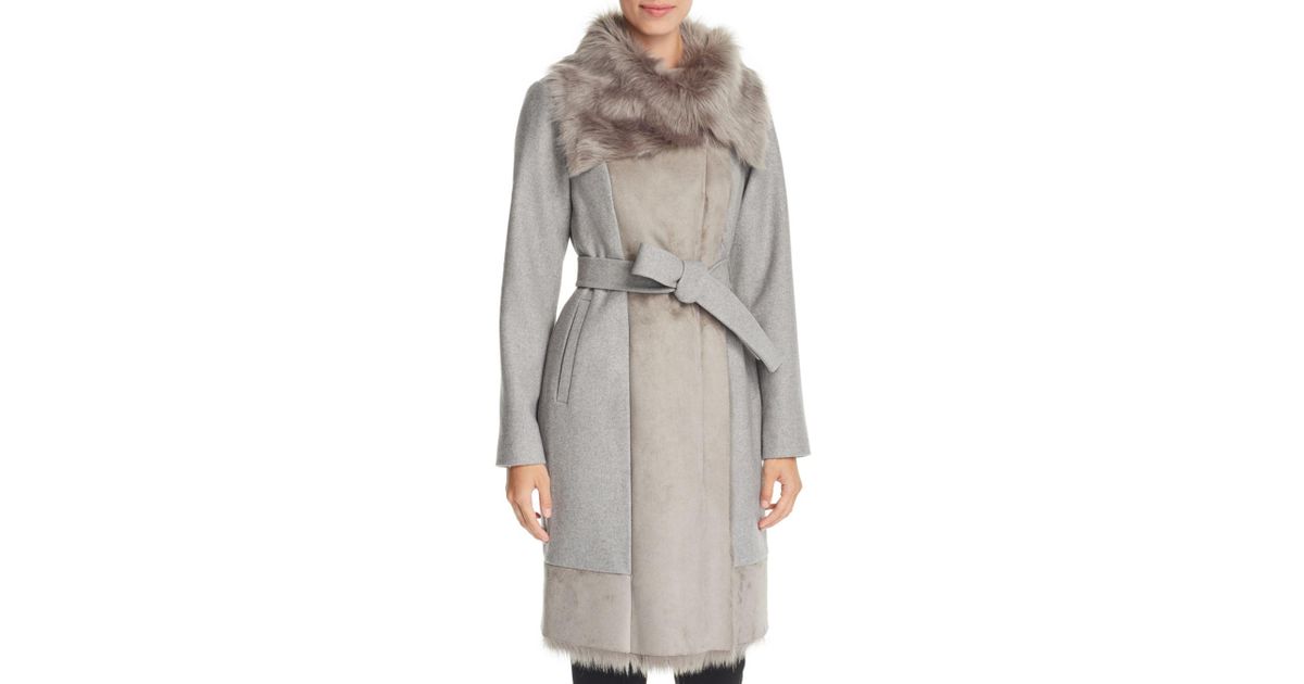 Buy Vince Camuto Womens Gray Faux Fur Trim Belted Wrap Coat.